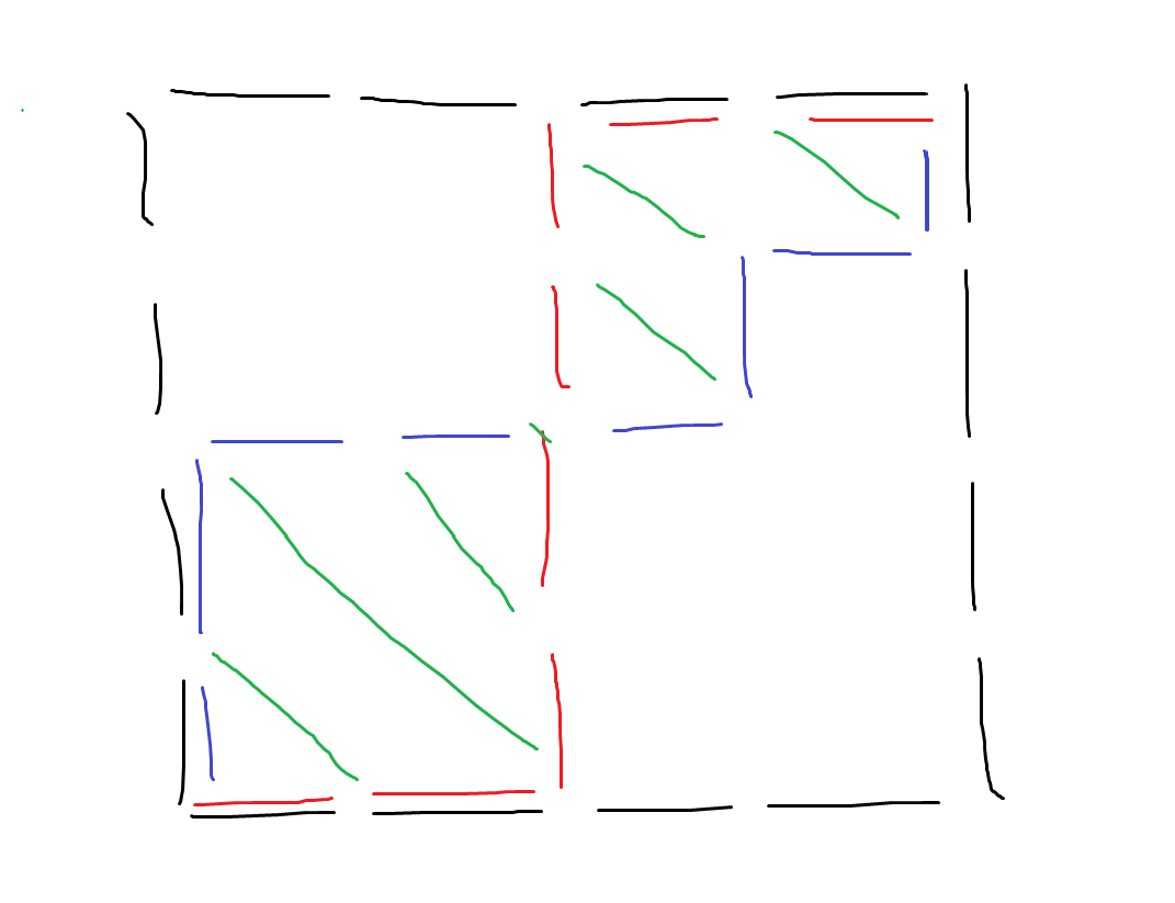 이런느낌. 그래서 각 초록색 대각선을 모두 양수로 만들거나 모두 음수로 만들면 되므로, $O(N)$에 계산할 수 있다.